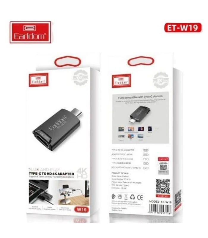 Συνδέστε τις συσκευές σας με τον προηγμένο αντάπτορα Earldom W19. Ειδικότερα, αυτός ο μετατροπέας αλλάζει τη θύρα Type-C του κινητού ή του υπολογιστή σας σε έξοδο HDMI. Έτσι, προβάλλετε την οθόνη σας σε οποιαδήποτε τηλεόραση ή μόνιτορ με χαρακτηριστική ευκολία. Παράλληλα, μοιράζεστε τις παρουσιάσεις ή τις αγαπημένες σας ταινίες σε μεγάλη οθόνη χωρίς καμία καθυστέρηση.