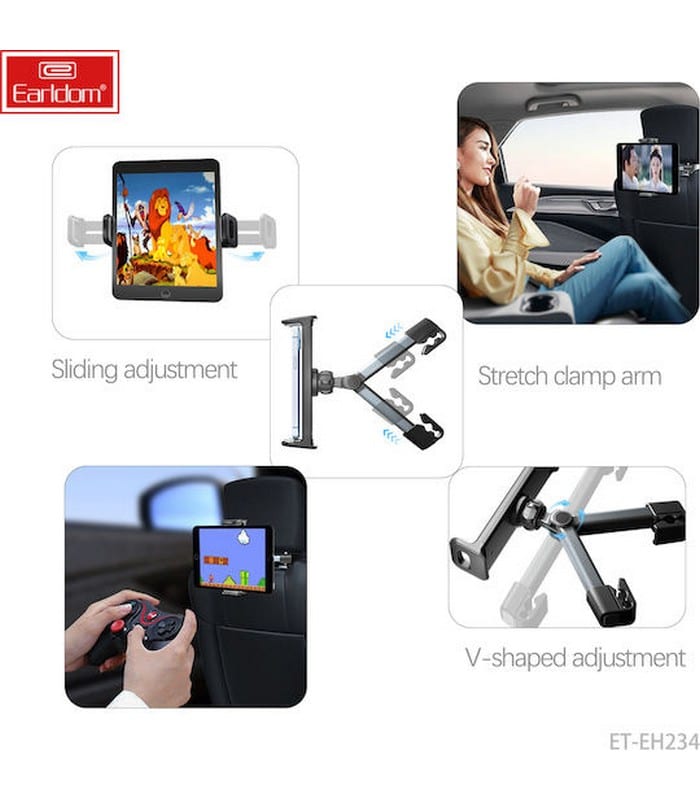 Χάρη στη περιστροφή 360° και τον ρυθμιζόμενο, επεκτεινόμενο βραχίονα, προσφέρει απόλυτη ευελιξία και άνετη γωνία θέασης, επιτρέποντας στους επιβάτες του πίσω καθίσματος να προσαρμόζουν την οθόνη ακριβώς όπως τους βολεύει. Σε αντίθεση με άλλες βάσεις tablet αυτοκινήτου, η Earldom EH234 διαθέτει δυνατότητα ρύθμισης τόσο εμπρός–πίσω όσο και καθ’ ύψος, εξασφαλίζοντας τη βέλτιστη εμπειρία θέασης.