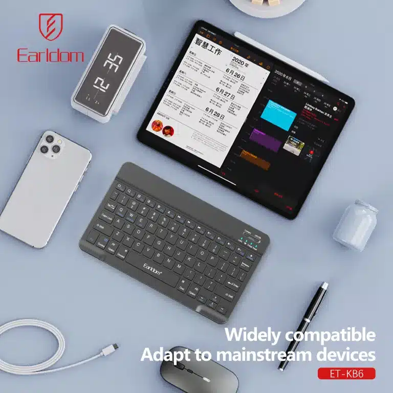 Το Earldom ET-KB6 είναι ένα κομψό, εργονομικό και εξαιρετικά φορητό ασύρματο πληκτρολόγιο, σχεδιασμένο για όσους αναζητούν ευελιξία και άνεση στην καθημερινή χρήση. Χάρη στη Bluetooth σύνδεση, μπορεί να συνδεθεί εύκολα με μια μεγάλη ποικιλία συσκευών όπως laptop, tablet, smartphone και smart TV, υποστηρίζοντας πλήρως Windows, macOS, iOS και Android.