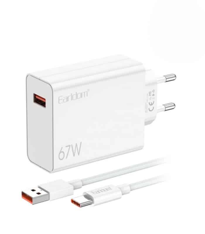 Ο Earldom EU47 67W Fast Charger προσφέρει ταχεία και ασφαλή φόρτιση για κινητά, tablets και άλλες συμβατές συσκευές. Υποστηρίζει Quick Charge 3.0 και Power Delivery (PD) για μέγιστη απόδοση, ενώ περιλαμβάνει καλώδιο USB-A σε USB-C για άμεση χρήση. Ιδανικός για καθημερινή χρήση στο σπίτι ή στο γραφείο.