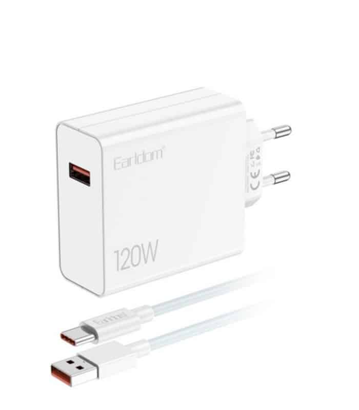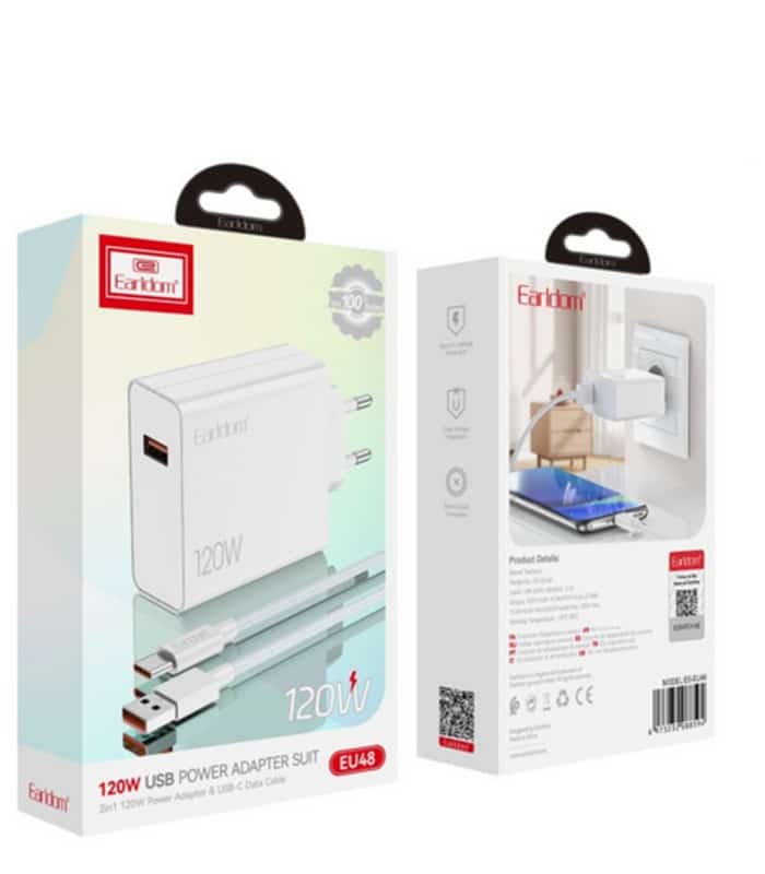 Ο Earldom EU48 120W Fast Charger είναι ένας ισχυρός και αξιόπιστος φορτιστής τοίχου με υποστήριξη Quick Charge 3.0 (QC 3.0) και Power Delivery (PD) για ταχεία φόρτιση. Με συνολική ισχύ έως 120W και συμπεριλαμβανόμενο καλώδιο USB-A σε Type-C, μπορείς να φορτίζεις γρήγορα smartphones, tablets και laptops με μία απλή σύνδεση.
