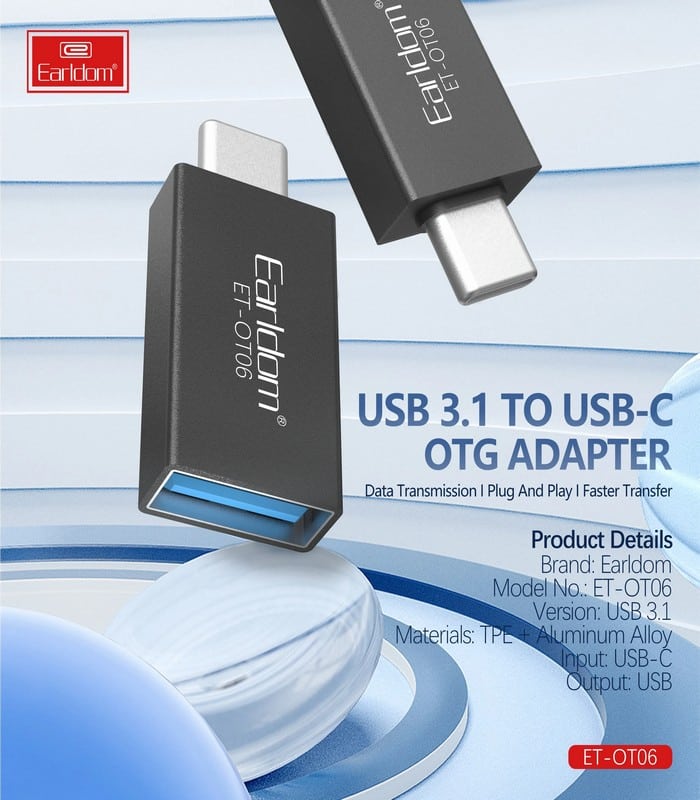 Ο Earldom ET-OT06 είναι ένας κομψός και φορητός OTG adapter που μετατρέπει θύρα USB-C σε USB-A, επιτρέποντας τη σύνδεση USB συσκευών (π.χ. flash drives, πληκτρολόγια, ποντίκια) απευθείας με το smartphone ή tablet σας.